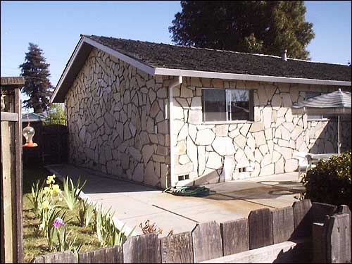 - Stone exterior has matching border stone wall